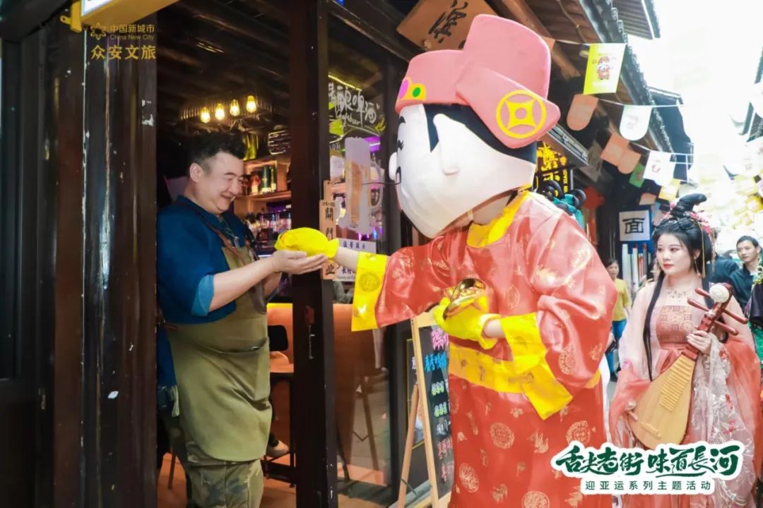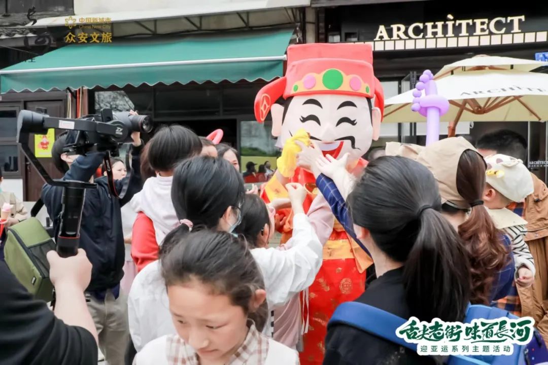 財(cái)神也同樣來(lái)來(lái)往往,到每個(gè)商家門(mén)口發(fā)金幣、糖果,格外有彩頭。